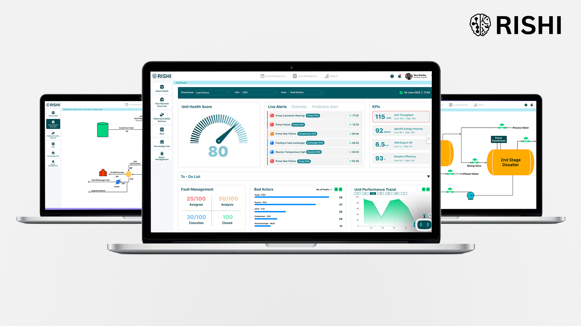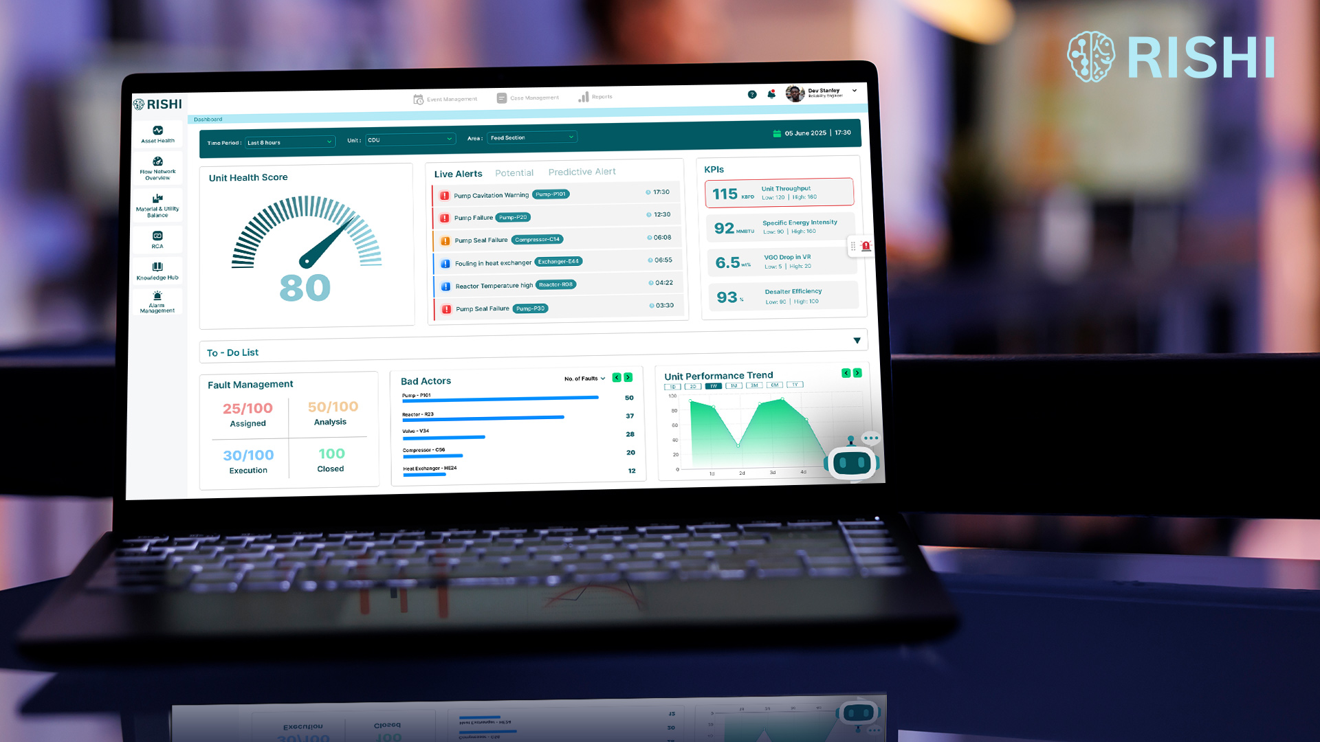 RISHI is an AI-powered operational intelligence platform built for complex industrial operations where reliability, efficiency, and decision speed directly impact margins, safety, and compliance. It transforms fragmented operational data into explainable, decision-ready intelligence, helping teams predict risks, prevent recurring problems, and continuously improve performance across assets, shifts, and sites.
